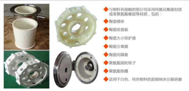 陶瓷砂磨机,是因为有很多的材质物料,在经过研磨的的过程中,不希望物料被金属污染,所有在研磨的过程中,使用的砂磨机的磨筒、砂磨盘(拨杆)、研磨介质都应该是由陶瓷材质的,而不含金属。因为在研磨的过程中不可避免的,都会对磨筒、砂磨盘(拨杆)、研磨介质有一点点的磨损,使之混合在研磨的物料当中。
